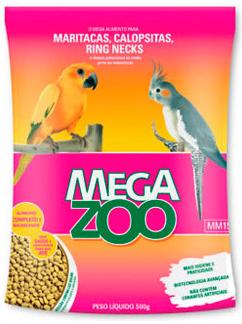 Pacotes da Megazoo existem dois tamanhos de ração, um maior (para passaros maiores como rigneks e maritacas) e um menor (para periquitos), o que muda é o tamanho dos grãos. Ofereça a sua ave o que ela preferir. Todos os pacotes citados podem ser encontrados em petshops ou loja de animais.