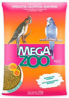 Para a ração, o ideal é o pacote da Megazoo para calopsitas (calopsitas, periquitos e argaponis). Oferecer principalmente a aves filhotes, jovens e aos pais quando estão na época de acasalamento e alimentando os filhotes. Se oferecermos a ração enquanto os filhotes ainda estão no ninho, os pais vão preparar a "papinha" para dar para os biquinhos com fome, então as vitaminas chegarão ao filhote, proporcionando um crescimento saldável a estes.